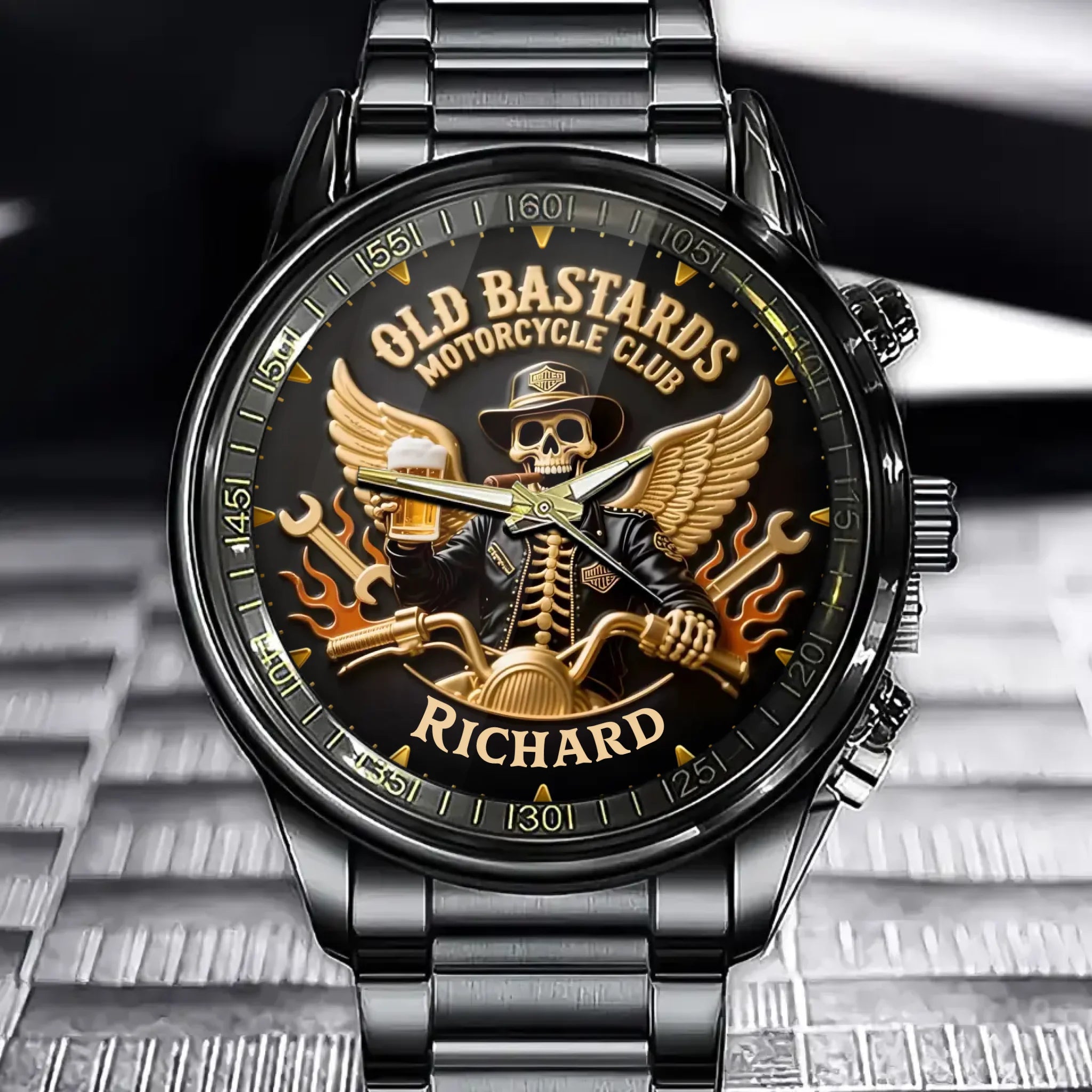Custom Motorcycle Watch - Personalized "Old Bastards Motorcycle Club" Design
