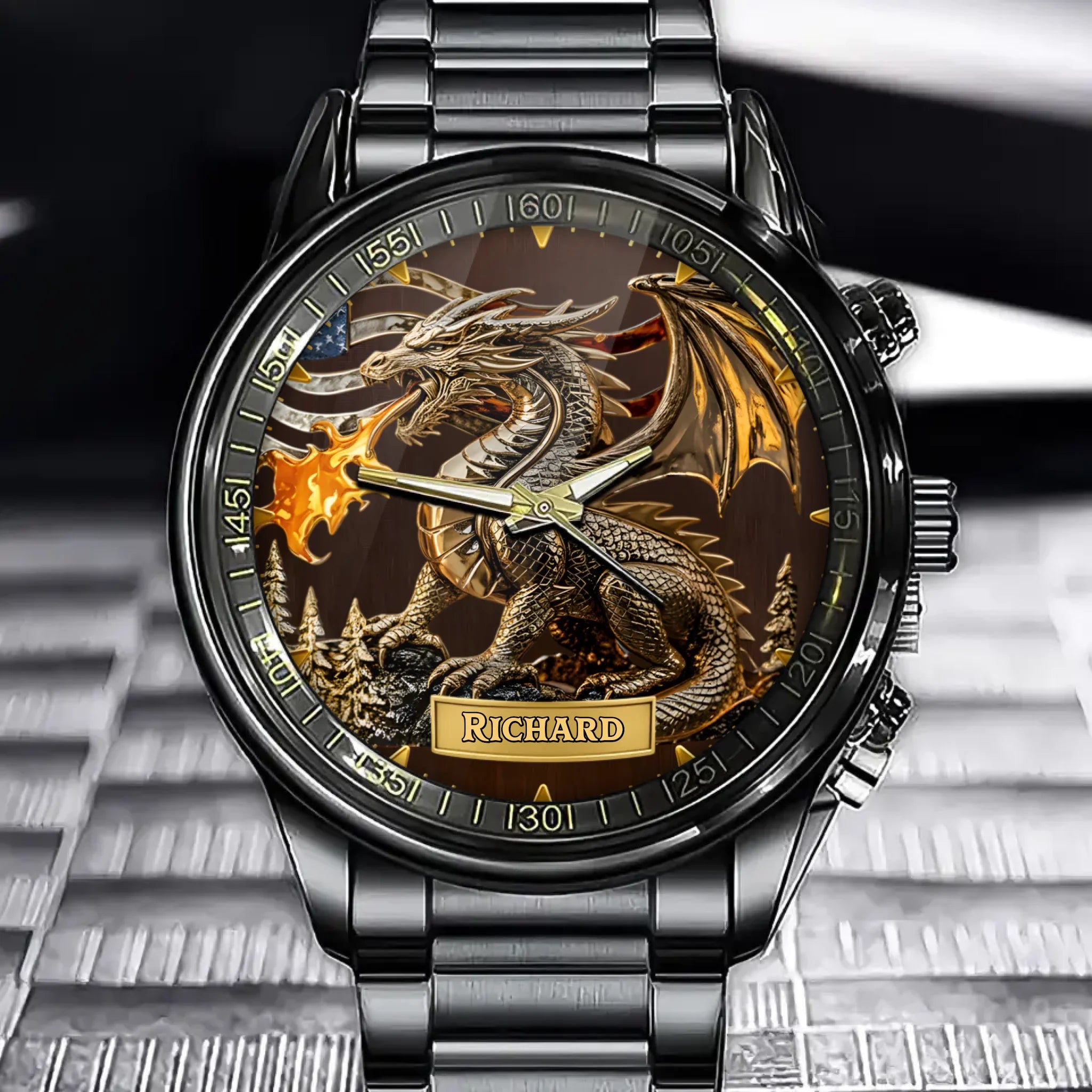 Personalized American Flag Dragon Watch - Tailor-Made For Flag And Dragon Enthusiasts