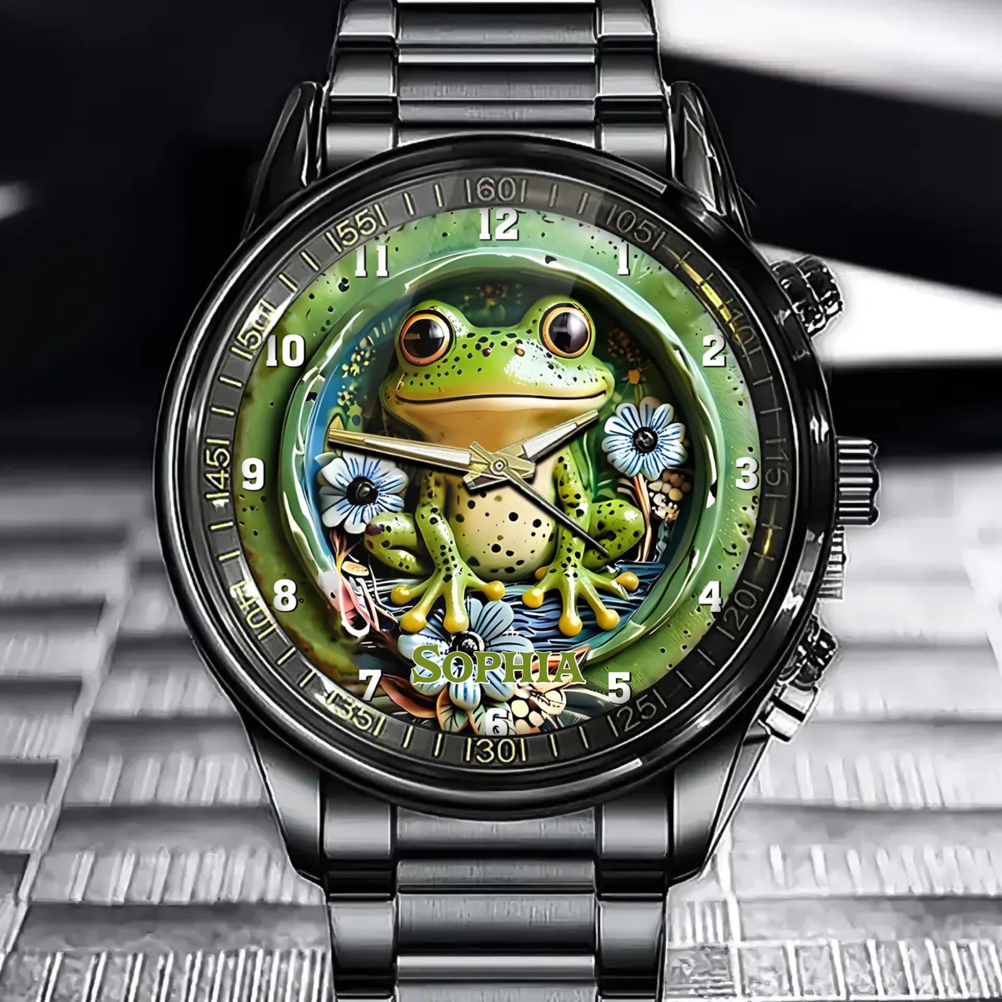 Personalized Frog And Flower Watch - A Beautiful Gift For Animal And Gardening Lovers.