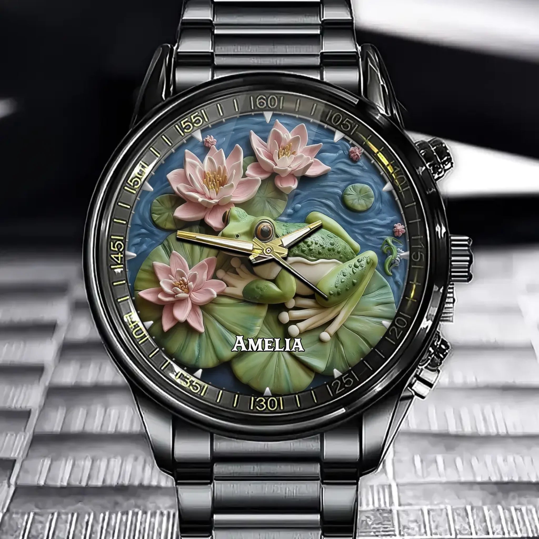 Water Lily Frog Custom Watch - Embrace The Harmonious Beauty Of Nature Accompanied